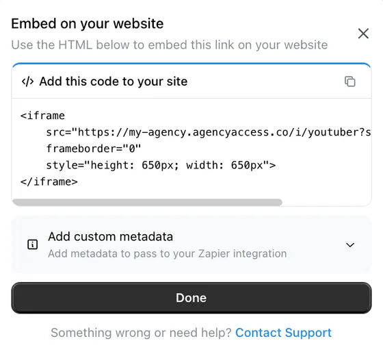 AgencyAccess lets you embed onboarding directly into your own interface. Clients stay where they already are, while you collect access, intake information, and onboarding steps in the background.